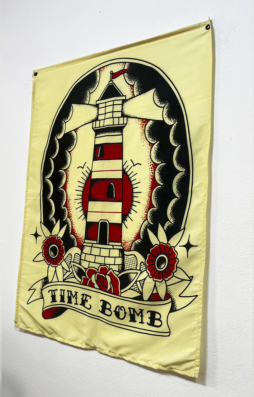 Bandeira com estampa da Time Bomb em sublimação.